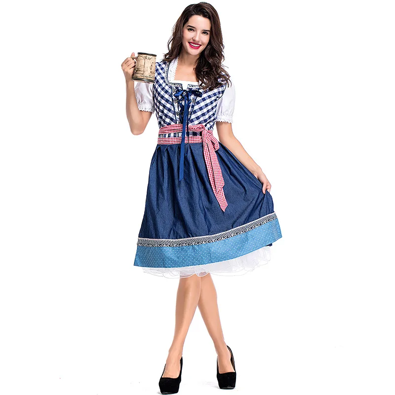 TOP Cotton Grid Women's Oktoberfest Sweetie Inga Long Dress Costume for Bavarian Tradition Beer Waitres