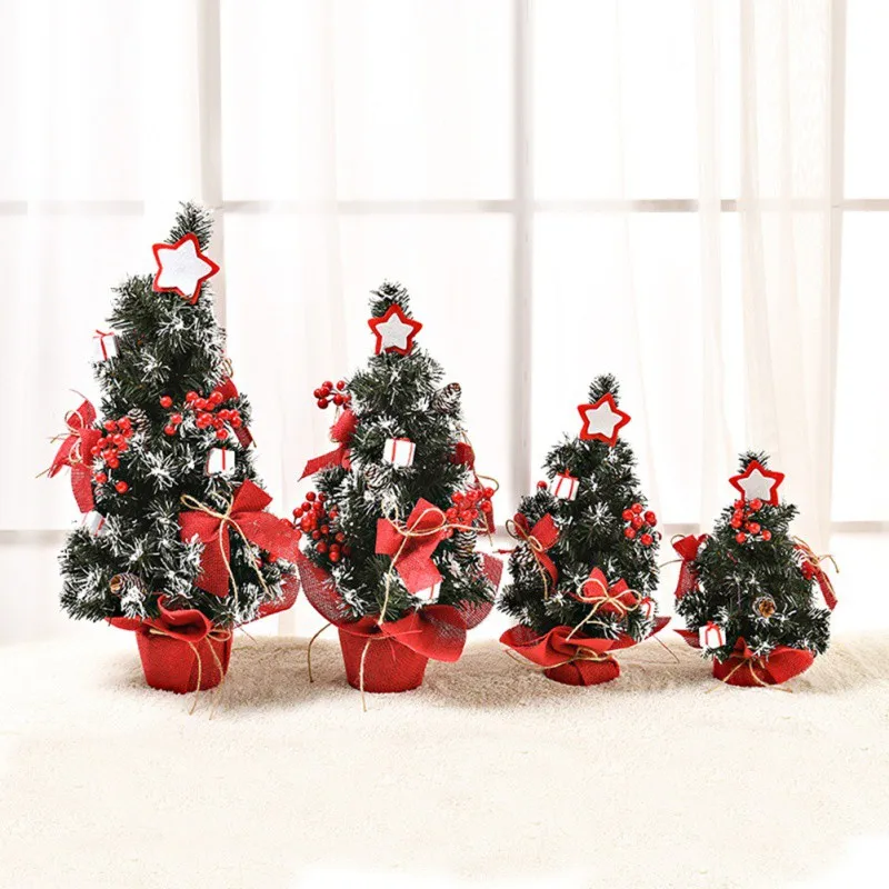 Handmade Christmas Tree Decoration Holiday Mini Artificial Tree With Stars Ornaments Festival Minia