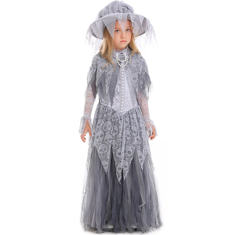 Girls Gothic Vampire Princess Cosplay Costume Witch Long Dress Halloween Carnival Party Ghost Fancy