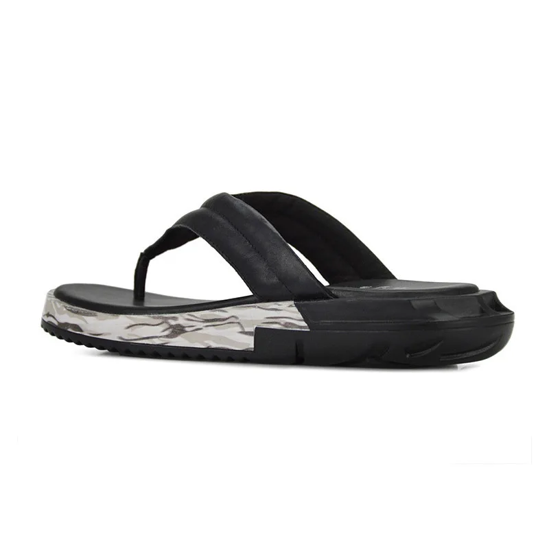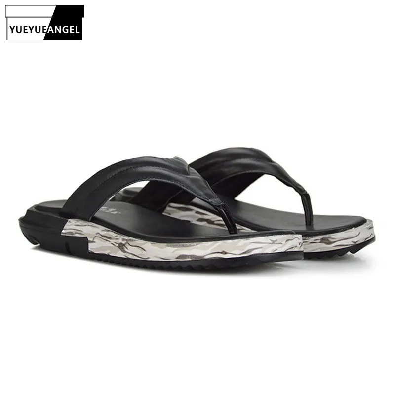 Summer Men Fashion Thick Platform Flip Flop Antiskid Bathing Slipper Genuine Leather Beach Holiday